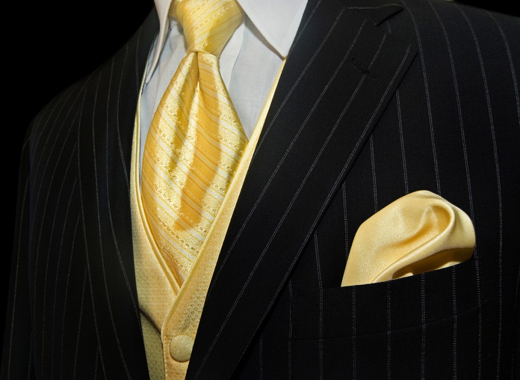 1. Найбільш головним аксесуаром для костюма нареченого буде нагрудний хустку. Його слід вибирати так, щоб він контрастував із забарвленням краватки і сорочки, але при цьому не зливався з костюмом. Подібний аксесуар зазвичай виробляють з натурального шовку, проте можна зустріти моделі, виконані з бавовни і льону. До одягу однотонного забарвлення можна підібрати хустку з принтами. У той же час однотонні варіанти будуть чудово поєднуватися з краваткою з візерунчастим малюнком.