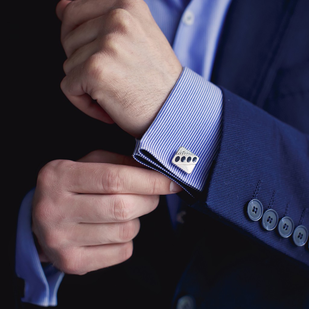 3. Запонки для костюма рекомендується вибирати в тон до сорочки або краватки. Вони повинні бути масивними, або привертати увагу оточуючих кольором каменю або цікавою гравіюванням.