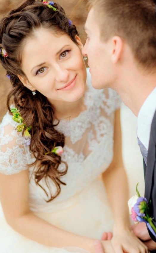 Молодим нареченим можна запропонувати такий варіант як зачіска зі злегка розпатланим волоссям. Завдяки чому образ нареченої виходить ніжним, романтичним і