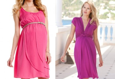 Такі сукні можна придбати в спеціальному магазині. Вони відрізняються від звичайного вечірнього плаття опуклої частою в зоні живота і завищеною ампирной талією.