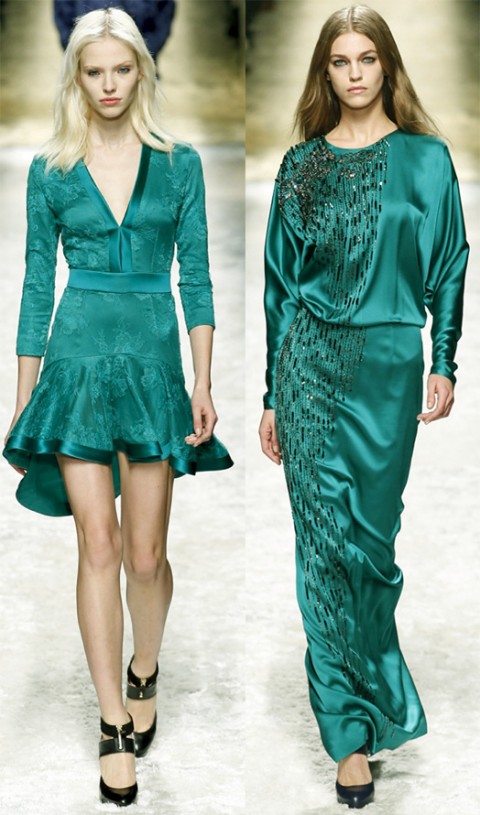 Хороша синьо-зелена палітра красивих суконь при зустрічі свята Нового року. Якщо вірити східним календарем, то 2015 рік, це рік дерев’яної Кози. Як вам рік пустотливий Кози-дерези? Модні тенденції радують розкішним багатством різних відтінків від жовто — зеленого до синього приємного кольору. Так що ви легко зможете підібрати для себе відповідний саме вашому типу зовнішності чарівний наряд. Чудовий колір морської хвилі, модна бірюза, а також м’які м’ятні відтінки — всі вони синьо-зеленого переливу в теплій і холодній палітрі фарб. Довгі новорічні сукні виглядають чарівно.