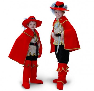 Переважання червоного зовсім не обов’язково, костюм може бути виконаний і в синьому і зеленому кольорі. Важливо намалювати на обличчі маленького Кота вуса, щоб ваш персонаж не перетворився на мушкетери.