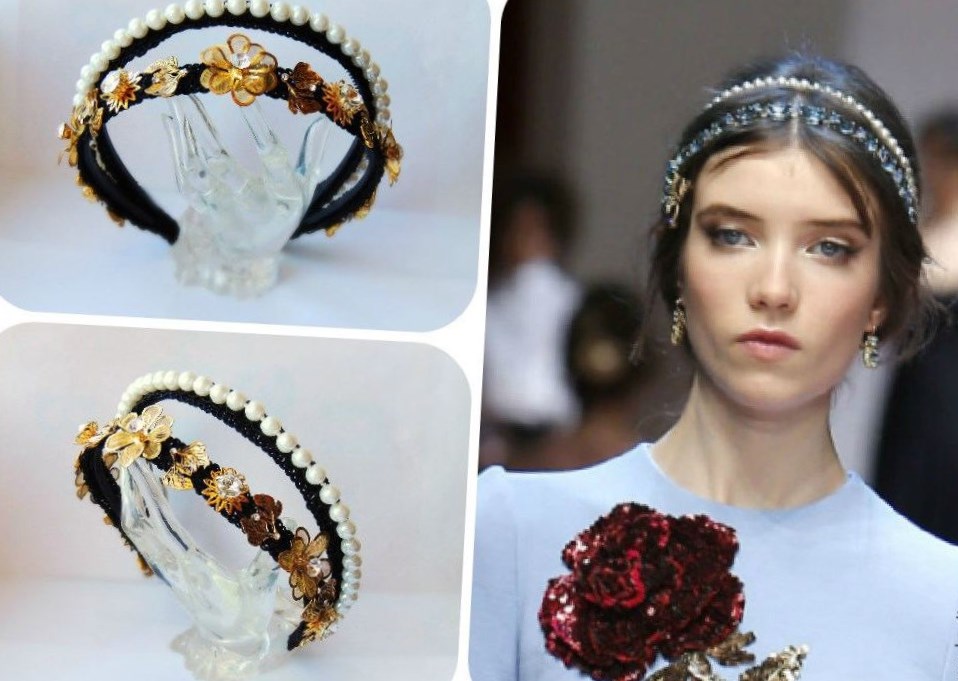 Однотонні чорні пов’язки додадуть образу аристократичності, в той час як найніжніші обідки, прикрашені квітами та перлинами, принесуть приємні літні