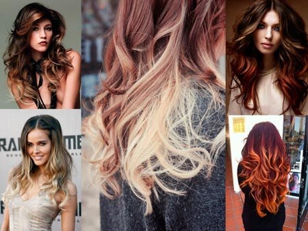 Налічується кілька різновидів такого фарбування. Лінія переходу між двома кольорами може бути мало помітною або, навпаки, різкою; можливий перехід від темного до світлого відтінку і навпаки. Також можуть використовуватися не тільки природні, але і яскраві, нетрадиційні кольори, не менш модними зараз є вінтажний варіант (ефект нефарбованих відрослих коренів) і подвійні pony-tail (ефект переходу як при вигорянні на сонці волосся, прибране в хвіст).