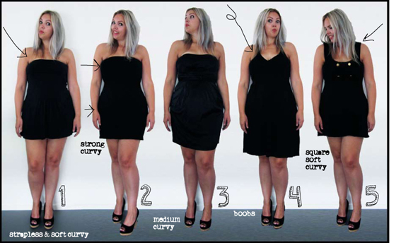 Якщо у вас красиві і стрункі ноги, надягайте плаття довжиною до середини коліна або з розрізом ззаду. Не одягайте занадто відкритий фасон сукні. Адже модель класичного чорного плаття досить закрита. Можна спробувати приміряти сукні різних форм: туніка, тюльпан, сорочка. Декольте плаття може бути досить глибоким. Чорне плаття буває без рукавів, з бретельками або бюстьє.