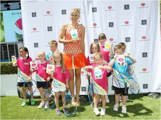 Саме в такому образі Шарапова рекламує жувальні цукерки власної компанії Sugarpova, яка випускає 12 найменувань. Солодкі ласощі виготовляються у вигляді зірочок, сердечок, павучків, фруктів, губ і навіть тінистих м’ячиків.