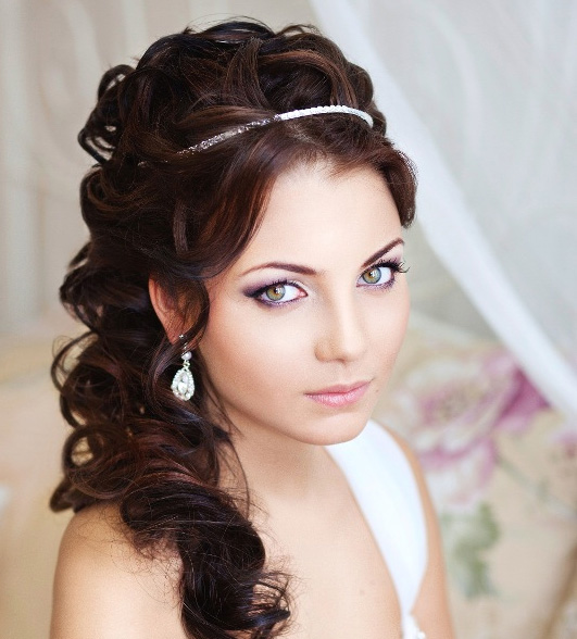 Перекинуті і укладене волосся на бік освіжать святковий образ. При цьому волосся можуть бути як рівними, так і завитим. Така зачіска буде виглядати дуже красиво і шикарно. Головне, не перевантажити стайлінгом, в іншому випадку зачіска буде виглядати неприродно.
