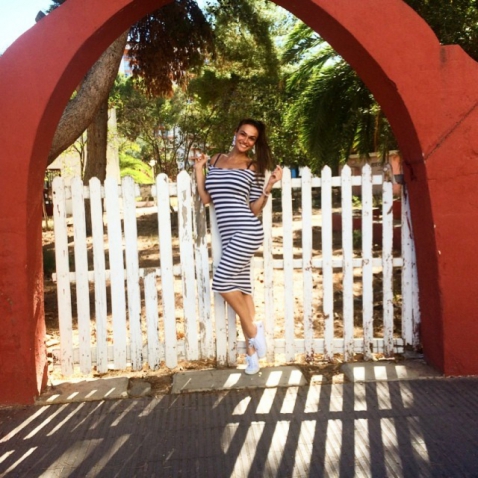 Альона Водонаєва в смугастому плаття