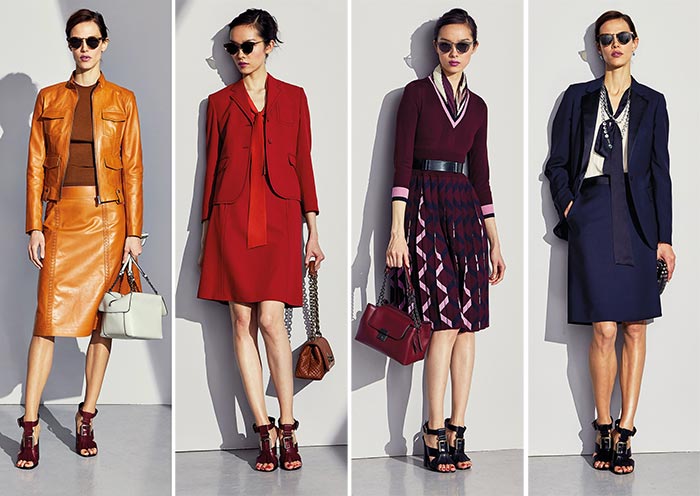 Майже кожен комплект одягу, представлений в пре-фолл включає в себе затишний тренчкот або куртку, речі переважно ручної роботи з м’якої вовни і шкіри, остання виготовлена Bottega Veneta і має відповідну підпис.