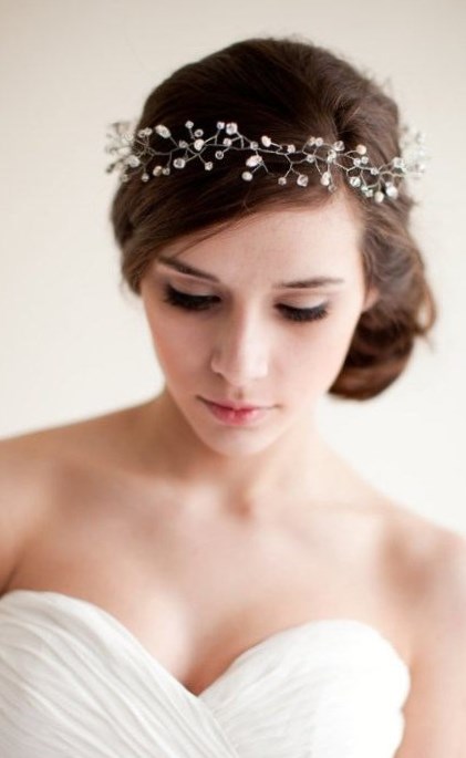 Якщо ж ваша весільна зачіска сама по собі ефектна, то не варто перевантажувати її зайвими елементами. Невеликий заколочки або тонкого обруча буде цілком