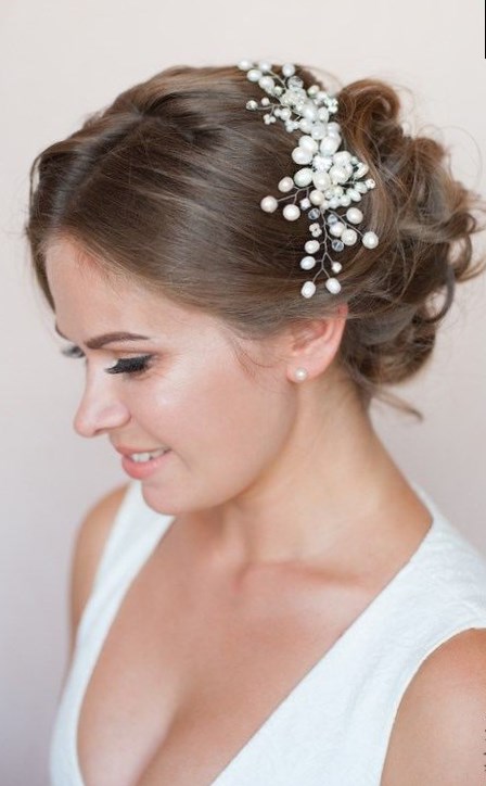 виглядати весільні зачіски «пучок збоку». Така романтична і гарні зачіски для волосся середньої довжини може мати різні оригінальні прикраси.