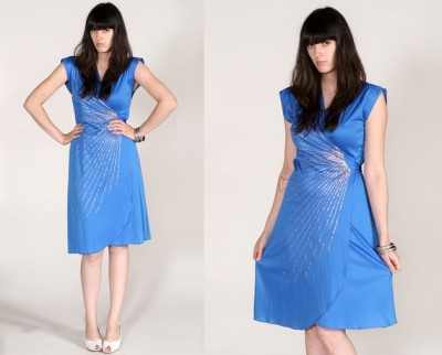 Якщо у вас зовсім немає часу на похід по магазинах або замовлення сукні — подивіться це відео. Короткий майстер-клас з пошиву простого святкового плаття з синьої тканини: