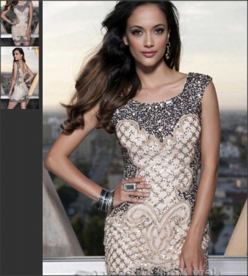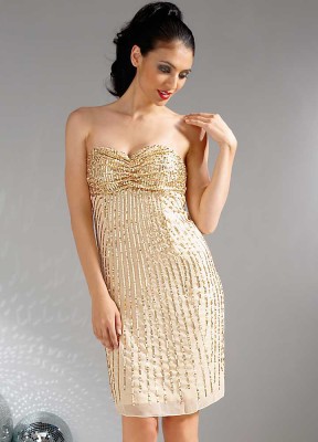 Ошатне коротке плаття підійде дівчатам з довгими красивими ногами. Асиметрично розташовані блискучі прикраси роблять його незвичайним і дуже сучасним.