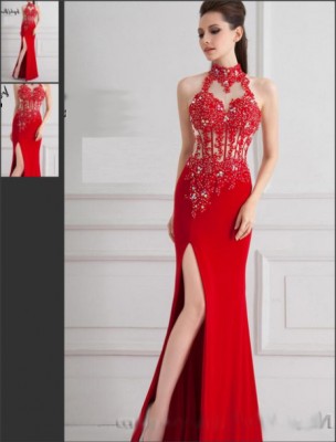 Верх цього червоного плаття неначе витканий з невагомих намистин. Вони розсипаються по шиї і грудей, повільно стікаючи на стегно. А високий розріз на тій же стороні продовжує візерунок з намистин. Такий нестандартний асиметричний крій святкового плаття робить його дуже незвичайним, і ви точно станете зіркою різдвяного вечора.