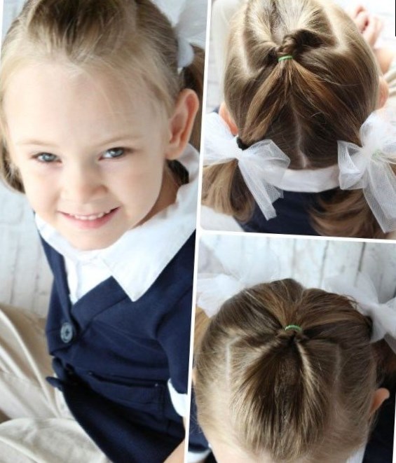 Для маленької дівчинки з волоссям середньої довжини або довгими прекрасним варіантом стане проста зачіска, яку ви зможете зробити за допомогою звичайних