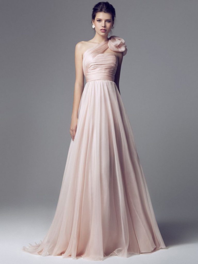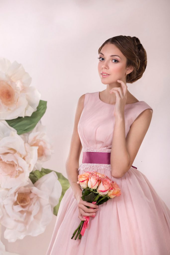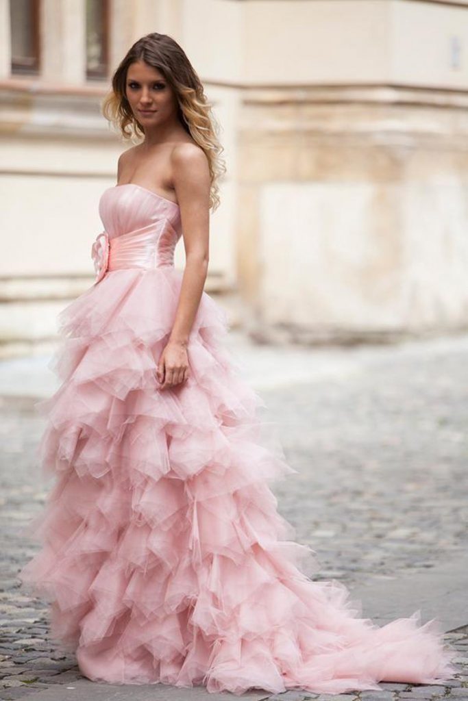 Існує думка, що ніжно-рожевий колір підходить тільки блондинкам або дівчатам з русявим волоссям. Однак це не так: брюнетки або руді теж можуть виглядати в рожевих сукнях приголомшливо, тут тільки питання в підборі відтінку.