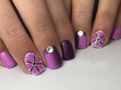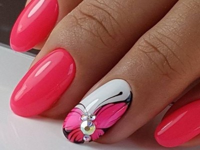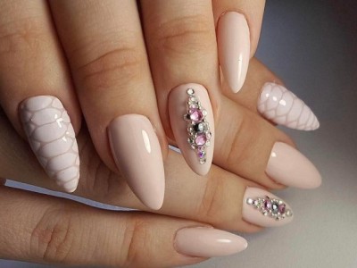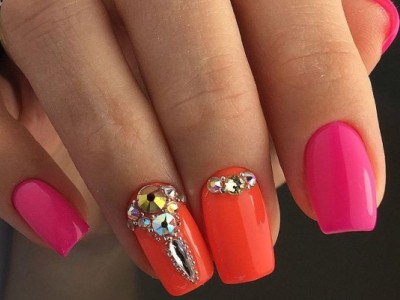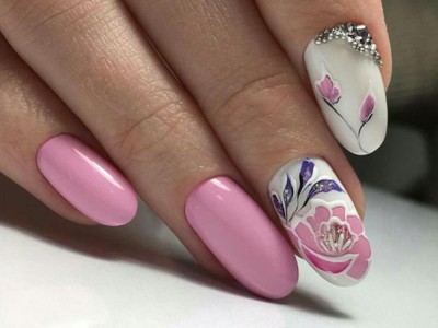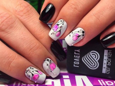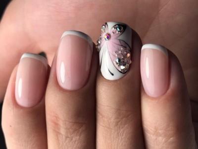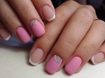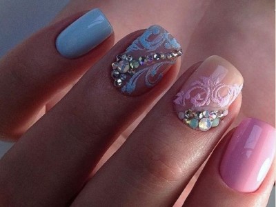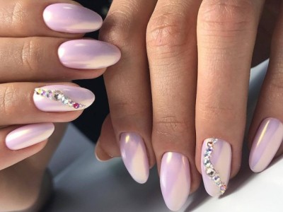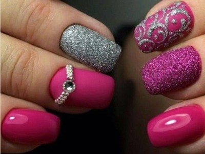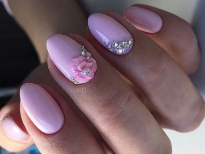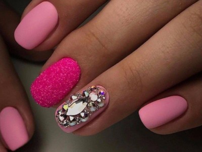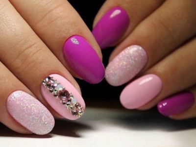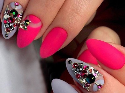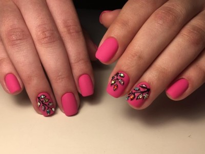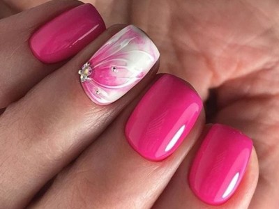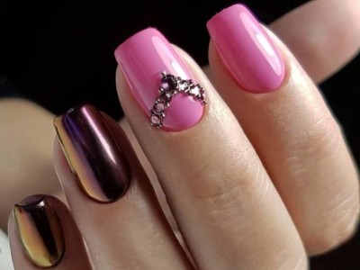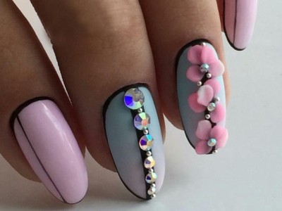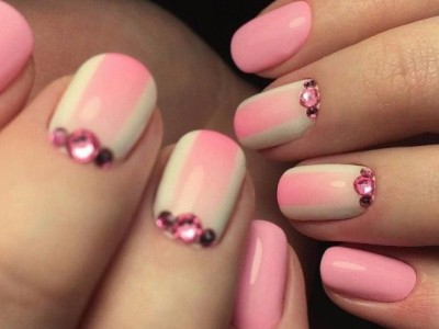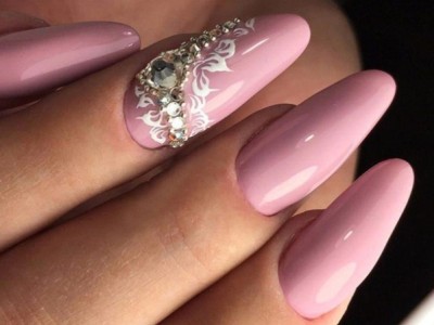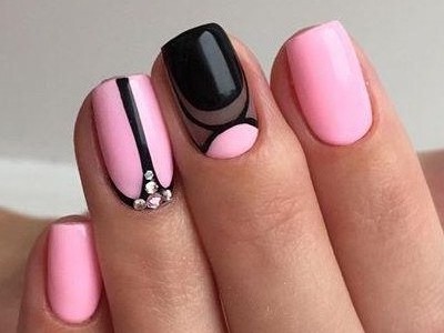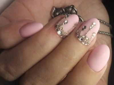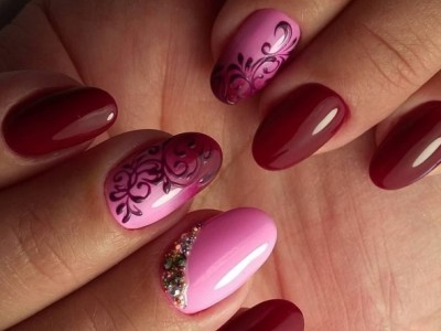 Рожевий арт зі стразами поєднується з будь-якою технікою. Головне – підібрати правильний розмір. Філігранно ограновані камені різних кольорів і розмірів садять на малюнки, виділяють ними лунулу, прикрашають бутончики на стеблинках і оформляють окремі фігури. У моді «колечка» з стразин, а також витягнуті композиції, більше змахують на ювелірні прикраси. Словом, робота далеко не незграбна, а повною мірою проявляє художнє чуття!