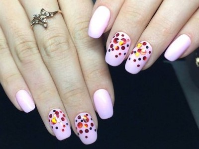 Симпатичнейшие паєтки на рожевому виглядають, як самий вишуканий десерт. Садити їх можна на припыленную базу або навіть на прозорий шар. Різнокольорові кружечки підходять стилю повітряних натур і модницям, які щиро вірять в чари. Щоб камифубуки протрималися до наступної корекції, перекривайте їх топом в техніці вирівнювання, щоб ні один краєчок не висунувся назовні.