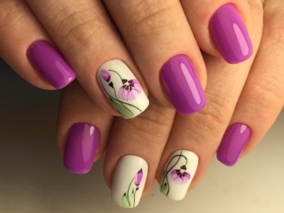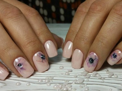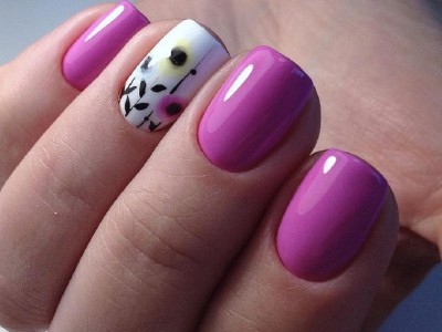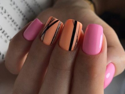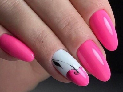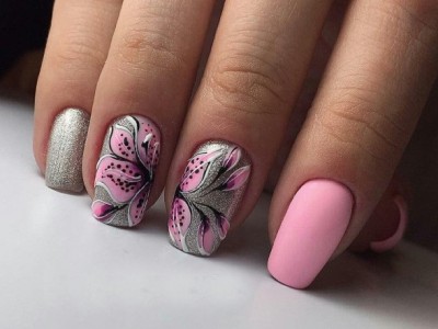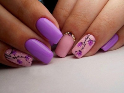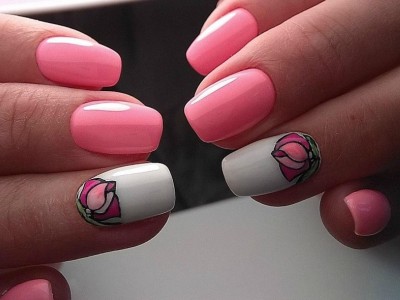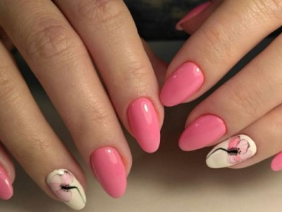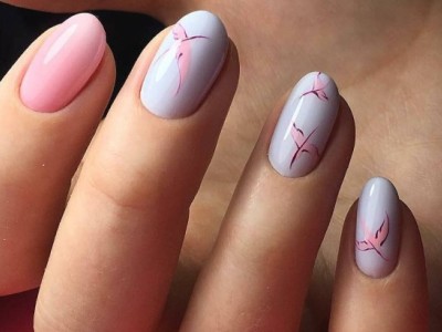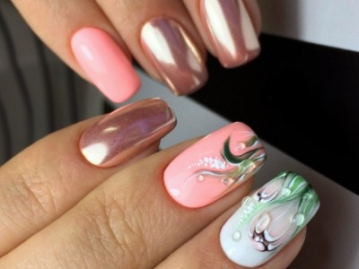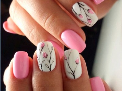 Краща з різновидів ніжного манікюру – гілочки і квіти, а рожевий – сама відповідна основа для них. Тоненькі стеблинки виводять на пастельній базі лайнером, а після вже зображують бутони. Лаконічний і милий арт не вимагає додаткового декору, але під настрій можна стеблинки увінчати невеликими стразинками або крапельками. Яскравості додасть контрастний лак на нігтях, відмінно рожевий поєднується з оранжевим і м’ятним.