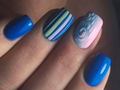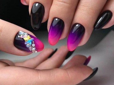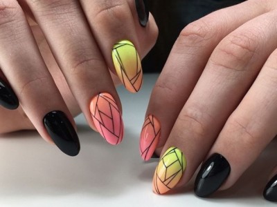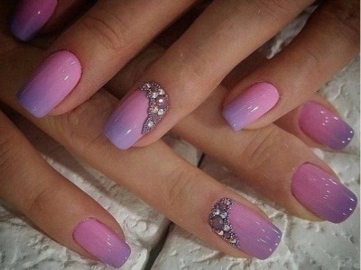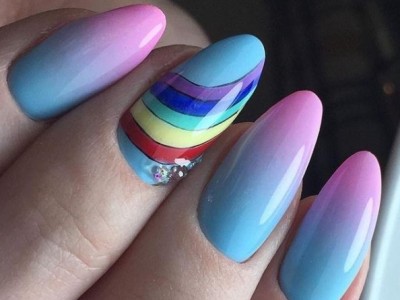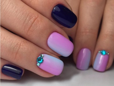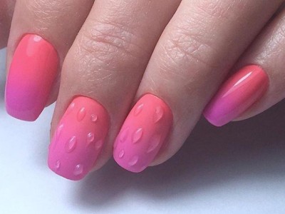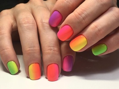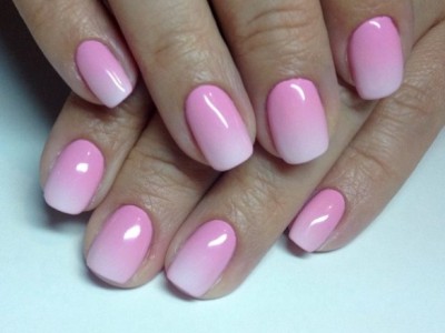 Повсюдно відомий нейл-арт омбре або градієнт так само гарний на коротких нігтях, як і на довгих. Така хитрість як нанесення більш світлого відтінку краю і темного у підстави сприятиме зорового подовження нігтів. Цікаво виглядає розтяжка від великого пальця до мізинця, коли кожен з пальців відрізняється від попереднього на один-два тони.