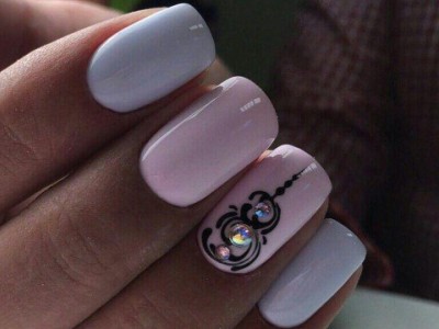 А ось вензелечки на всіх відтінках рожевого не належать тільки до літа. Пастельні тони в тренді в будь-який час року, вензелі виконуються в чорному, білому, бежевому… Їх присипають блискітками або різнобарвною пудрою, тому результат виходить нарядно. Посилять враження стрази. Рожеві вензелі будуть виграшно виглядати на блакитному, білому, чорному.