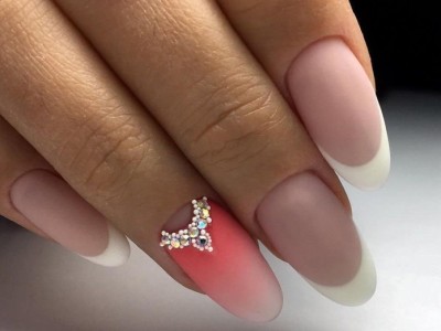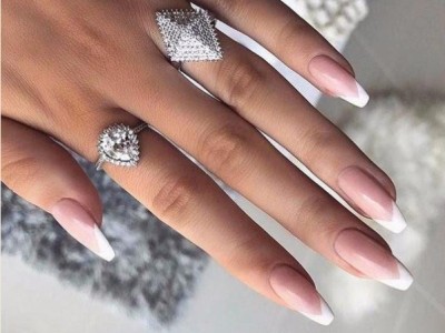 Оду жіночності та природності в цьому сезоні співає французький манікюр. Камуфлирующие лаки дуже популярні і в основному їх використовують для френча. Усмішка – звичайна біла, але іноді можна похуліганити і оформити, наприклад, рожево-чорний френч, на якому буде темна контрастна посмішка. У фаворі сьогодні і зворотний сріблястий. Якщо ви відносите себе до суворим леді, то мучитися з гаком декором не варто, адже простота в тренді. А якщо душа вимагає свята, то вперед! Стрази, втирка, ліплення, вензелі, малюнки та слайдери френч прийме з радістю. З ніжним кольором можна поекспериментувати з балериною – на гвоздичной базі намалюйте геометричну посмішку і милуйтеся результатом!