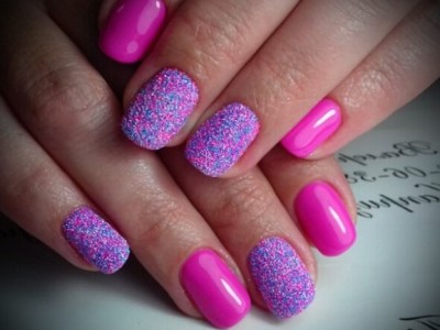 Якщо посипати пластину акриловою пудрою, то вона стане набагато нарядно, порахували любительки цукрової вати. Якщо лунку зробити «особистого», арт буде оригінальніше, вторили їм інші. Те ж правило працює з малюнками, від присипки вони здаються опуклими, спрацьовує тривимірний ефект. Градієнтні переходи, коли рожевий перетікає в червоний, ліловий або , на піску будуть набагато вишуканішим.