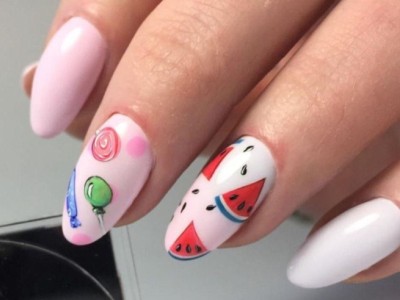 Незважаючи на те, дитинство і юність залишилися позаду, можна урізноманітнити нейл-арт зображеннями ягід або фруктів.