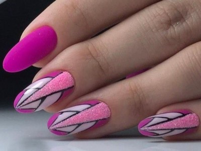 Покрийте таким топом пластини та отримайте благородний манікюр. Сатинове покриття прибирає зайвий гламур і несерйозність і відразу зводить вашу ідею в розряд розкішних. Зверніть увагу на ці приклади – навіть однотонний арт кольору фуксії виглядає нереально дорого.