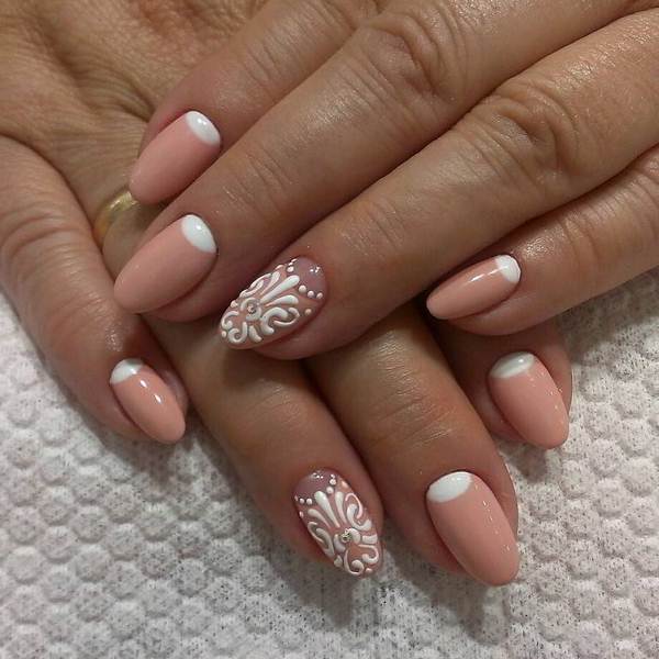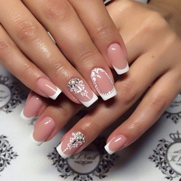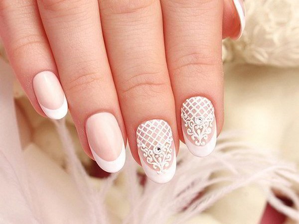 Найкраще рішення для весільного лука наречена, безперечно, стане найніжніший мереживний френч манікюр, виконаний в світлій гаммі гель-лаків.