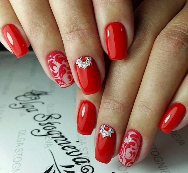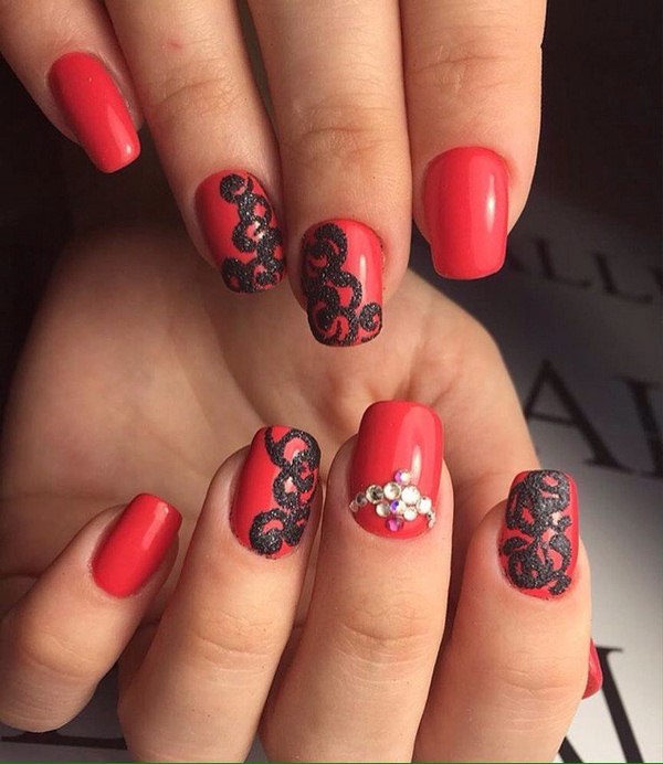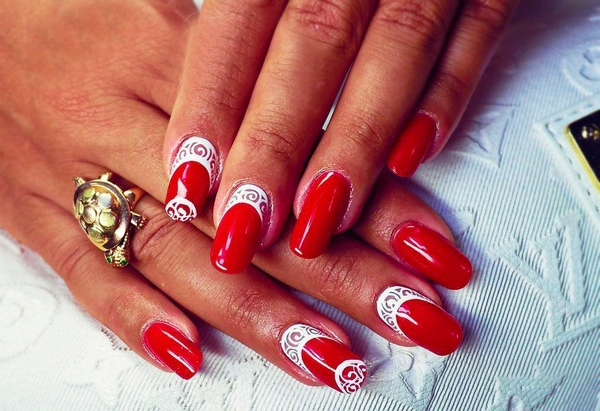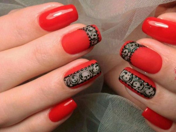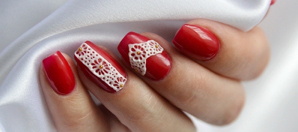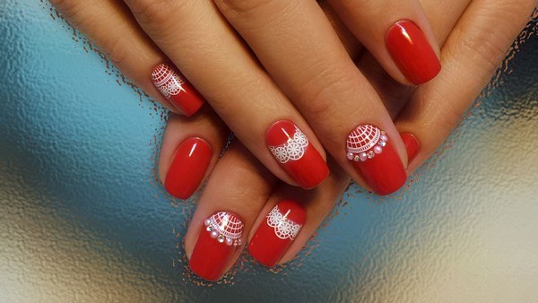 А ось самі чудові і без перебільшення, захоплюючі види червоного мереживного манікюру зібрані трохи нижче. Такий манікюр з мереживом в червоних тонах підійде під гарну вечірню сукню, брючний костюм, комбінезон і будь-який інший торжетсвенный наряд.