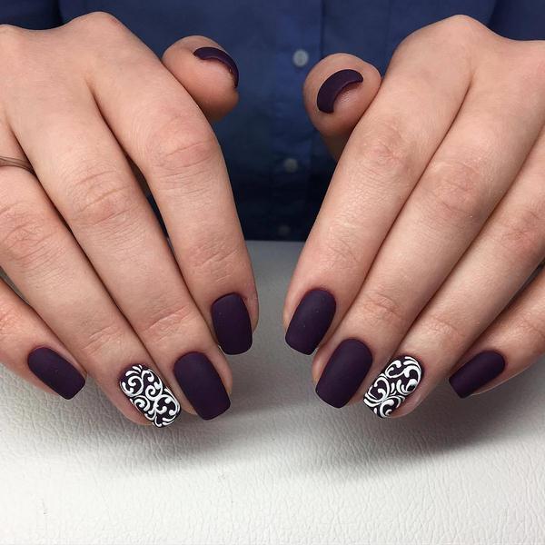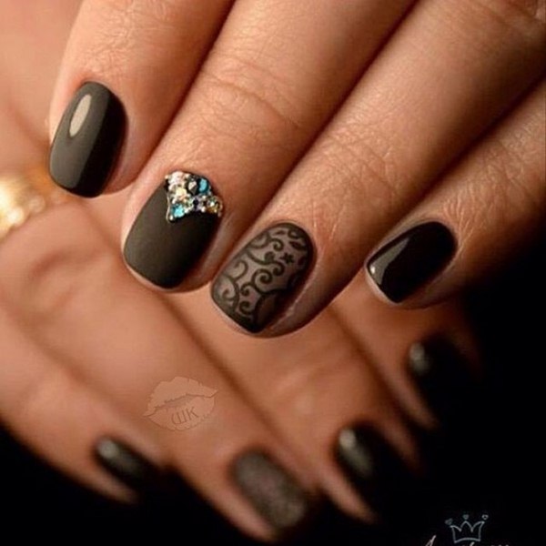 Розкішні нотки і без того шикарному манікюру з мереживом може надати і глибина оксамитового покриття в матовому рішенні.
