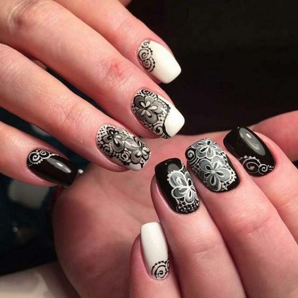 Розкішний манікюр 2019-2020 роки з чорним мереживом