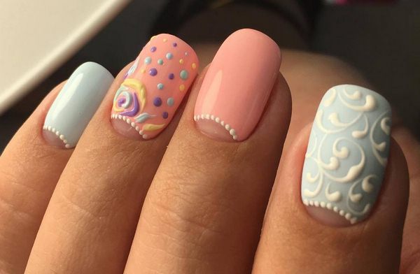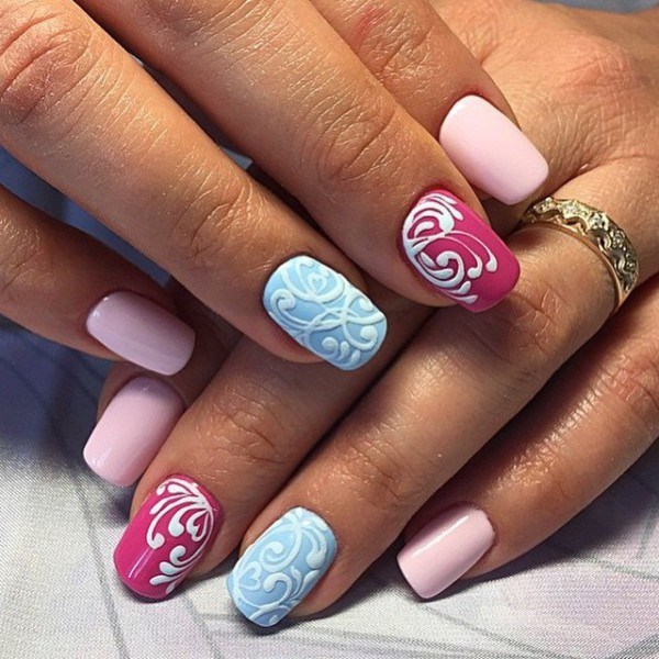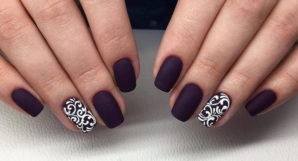 Незвичайний матовий мереживний манікюр 2019-2020 в тандемі таких відтінків кольору, як бежевий, ніжний рожевий, персиковий, малиновий, червоний, фіолетовий, білий і чорний.