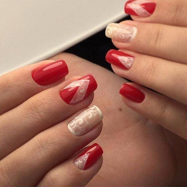 Красивий червоний мереживний манікюр 2019-2020 роки