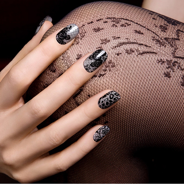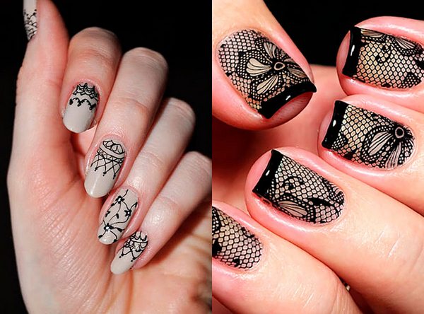 Створити чорні мереживні мотиви на нігтях можна різними способами: найбільш простий – стемпинг. Також розкішне мереживо в чорному кольорі можна намалювати або приклеїти спеціальне мереживо для манікюру, що дозволить домогтися найкращого результату і створити чарівний манікюр з чорним мереживом 2019-2020.