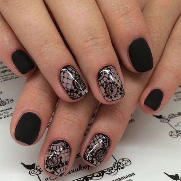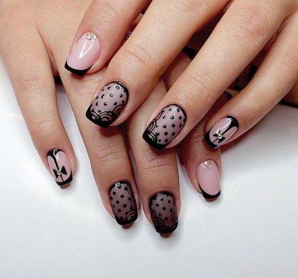 Бажаєте ефектний манікюр, і в той же час святковий, урочистий і ніжний – тоді модний манікюр з чорним мереживом стане вашим улюбленим у сезоні 2019-2020 роки.