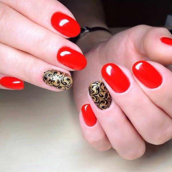 Щоб червоний мереживний манікюр виглядав оригінально, майстри рекомендують розбавити червоний тон – білим, бежевим, чорним, золотом і сріблом. Це можуть як мереживні елементи даних тонах, так і основа манікюру.