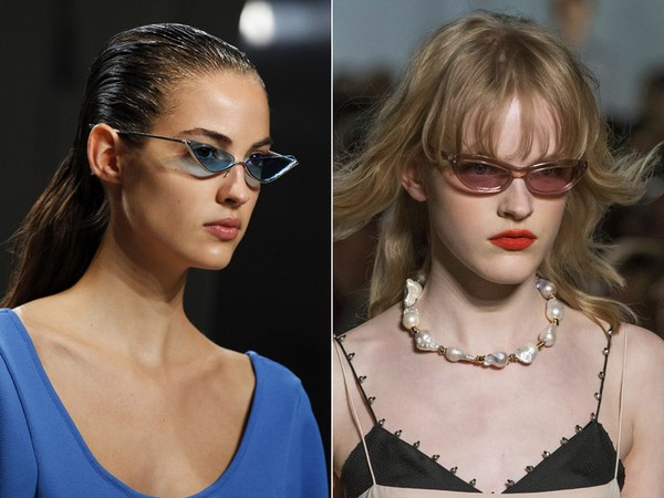 Актуальні сонцезахисні окуляри 2019-2020 в тонкій металевій оправі з дзеркальними або напівпрозорими стеклами, надаючи лаконічність і особливий шик look’и у.
