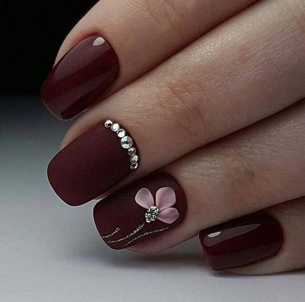Чарівний манікюр з квітами в матовому варіанті буде доречний з особливого приводу для урочистості та святкування, оскільки він не практичний, так і прослужить не так довго, як звичайний квітковий манікюр.