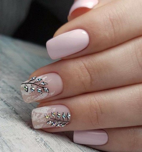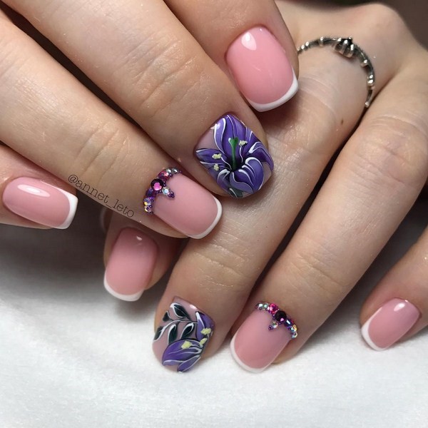 Модний квітковий манікюр з інкрустацією стразами
