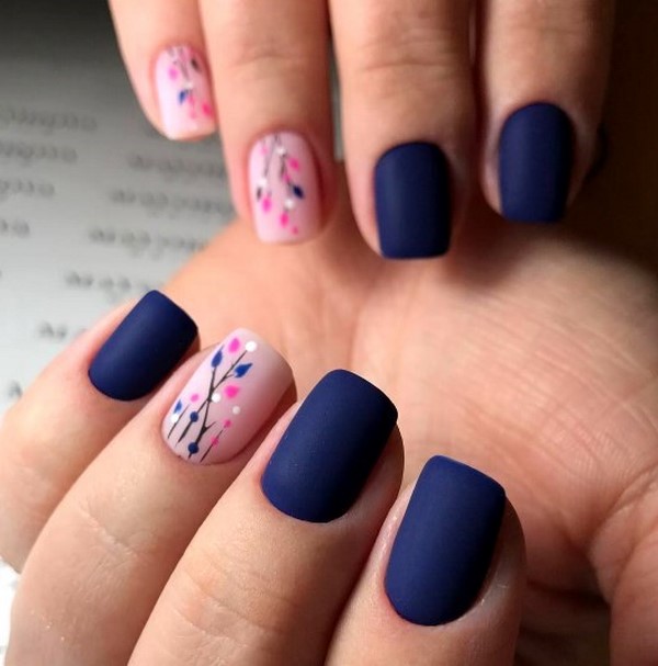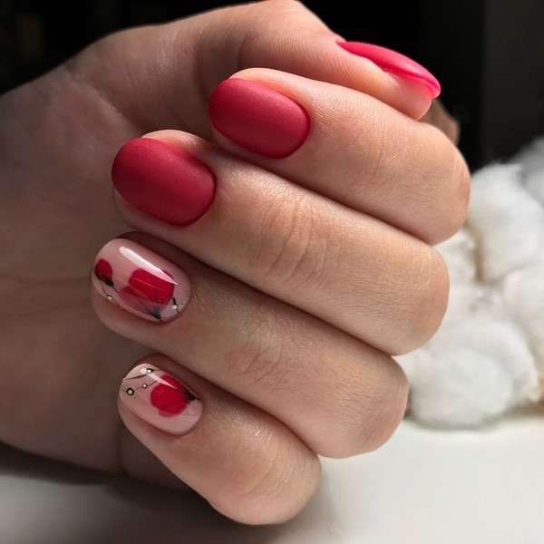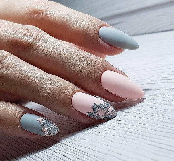 Вишуканий і особливий квітковий манікюр можна зробити в матовому вигляді з пудрою. Об’ємні і ефектні квітки в матовому стилі виглядають чарівно.