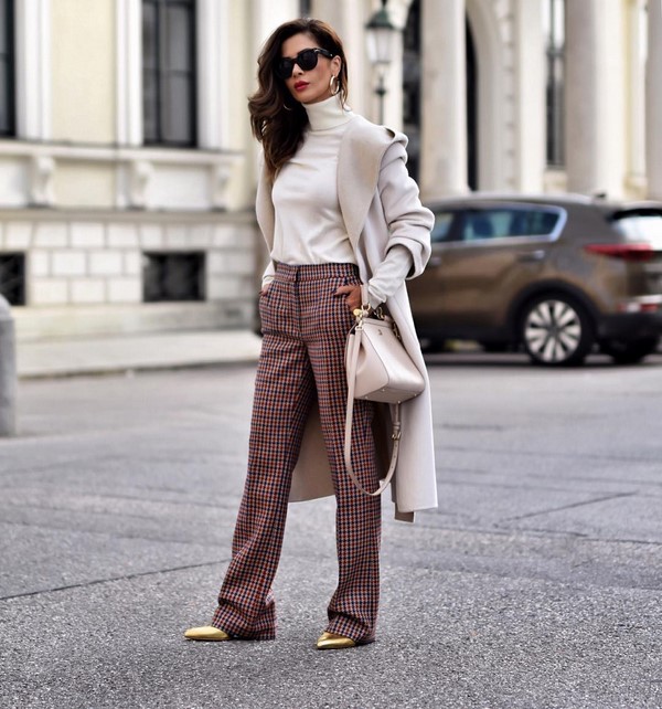 Джинси та брюки кльош, широкі і укорочені моделі можна доповнити блузками і сорочками з принтами в клітку і квітами, що дозволять виконати супермодні осінні луки 2019-2020 роки.