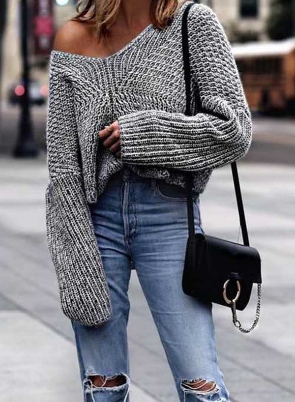 Тенденції осінньої моди роблять акцент на в’язаних светрах і джемперах з відкритими плечима, вирізами та прорізами, незвичайними зав’язками і шнурівкою.