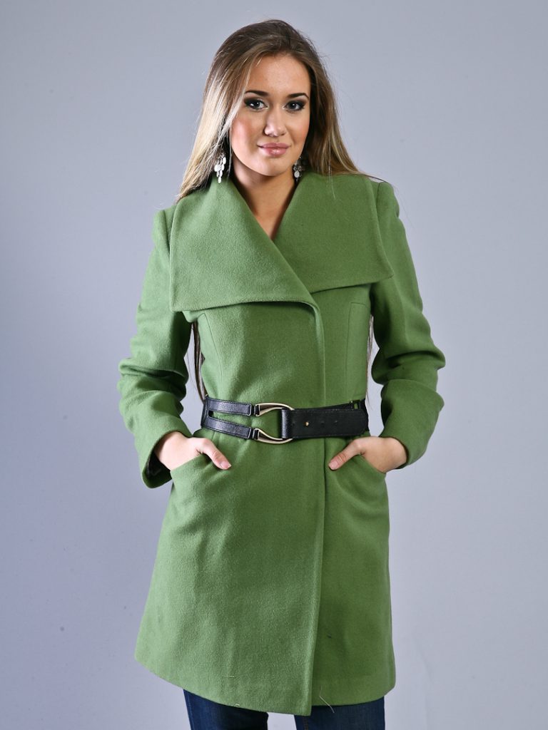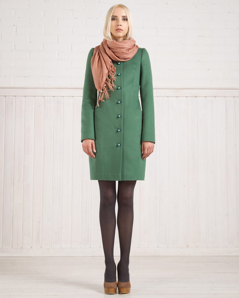 Жіночі брюки або спідниці насичених кольорів носити з зеленим пальто не рекомендується. В даному випадку найкращим варіантом стануть чорно-сірі, бежеві або сіро-жовті моделі з оригінальним декором.