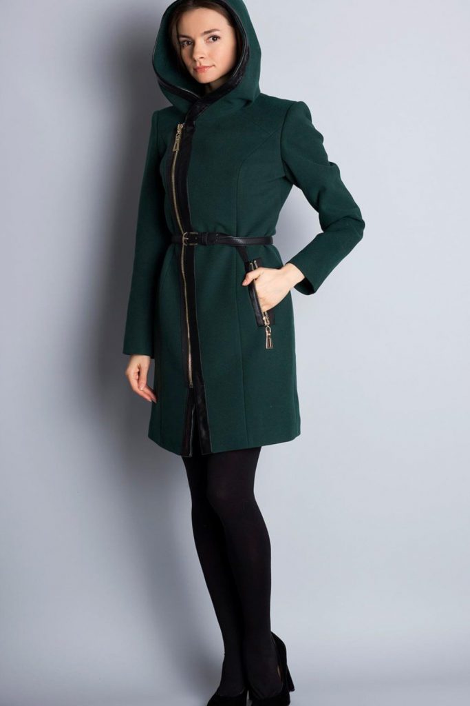 Дуже цікаво виглядає зелене пальто в стилі мілітарі. Як правило, це двобортні жіночі моделі з наявністю плічок і гудзиків. Завдяки капюшону, такі вироби дуже прості, але, в той же час, комфортні.