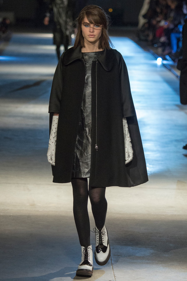 А це соковите синє шкіряне плаття добре виглядає разом з накидкою.