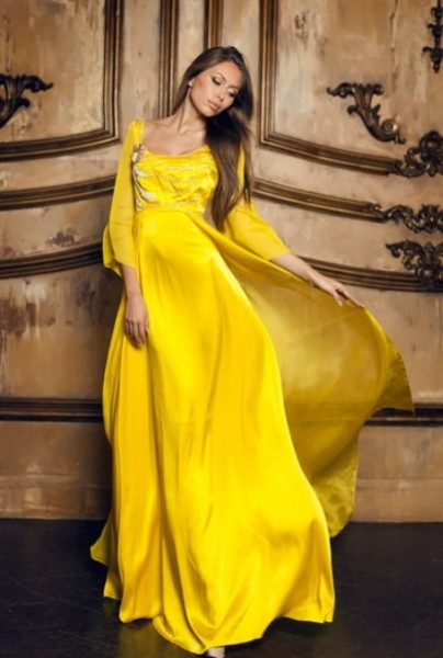 • класичним варіантом вважається однотонне вечірнє плаття з шовку з сріблястим або золотистим відливом. Такий варіант ідеально підійде для будь-якої жінки, адже він універсальний. Жінкам, які належать до літнього кольоротипу підійде зелене, жовте або біле шовкове плаття, але від більш яскравих відтінків краще відмовитися.