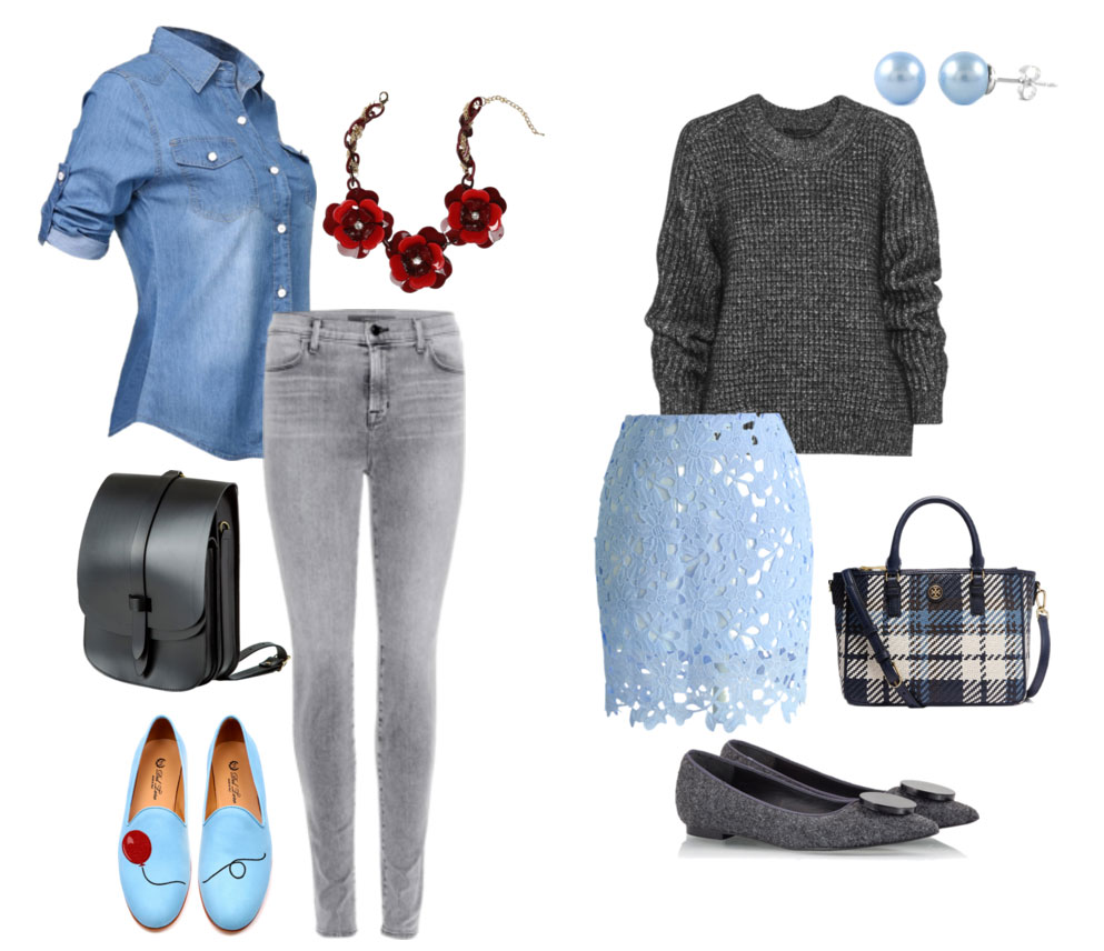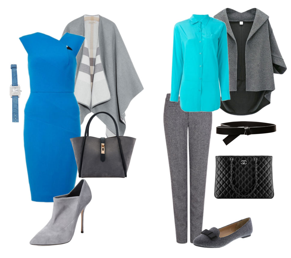 Синій вважається одним з «ділових кольорів, тому стане чудовим прикрасою ділового костюма. Кому йде поєднання синього з сірим? Абсолютно всім! Головне, підібрати правильні відтінки синього залежно від ситуації. Наприклад, сорочки і блузи насиченого синього кольору виглядають строго, а блакитного – відкрито й доброзичливо.