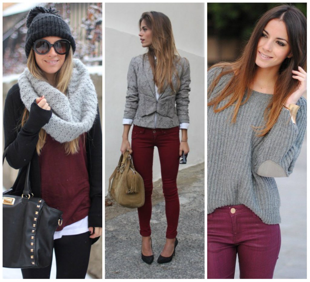Бордовий вважається статусним кольором і підходить для створення серйозного образу. Тканина повинна бути якісною, бажано без принтів і зайвих прикрас. Додадуть родзинку аксесуари (наприклад, білий або чорний перли).
